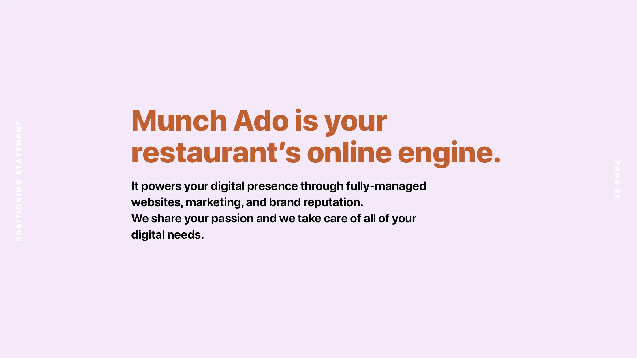 Package all of the services Munch Ado offers into one, benefit-focused package, and communicate complex features through relatable points and stories.